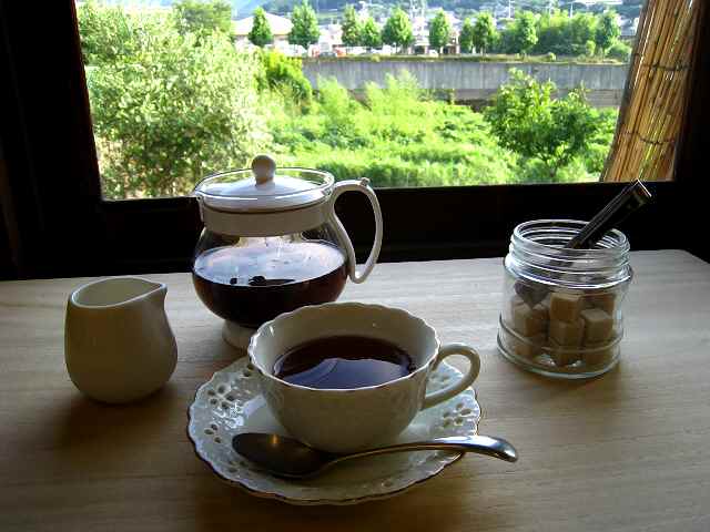 コーヒーも好きですが、紅茶も大好きです。 芦屋のムジカティーから 取り寄せた茶葉を 20種類あまり取り揃えています 提供の仕方は、ポットでゆっくり蒸らして抽出した、イギリス風の紅茶と、 セイロン風の紅茶 (チャイ)と アイスティーなどがあります。