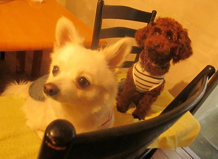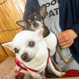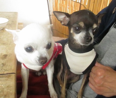 おばちゃん~ 元気やった~? もう、コロナでつぶれとるんかとおもてたワ リン(上)とムース(前) 気になって見に来たげたよ |