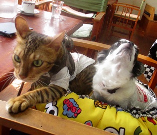 右 ふたばちゃん 左 ユウ君(にゃんこ) えっ! ギャラは チュールか? |