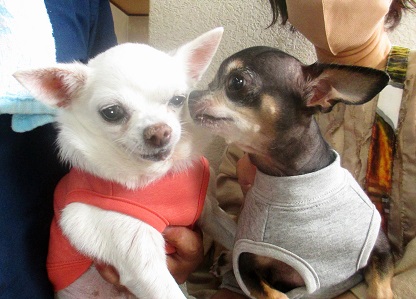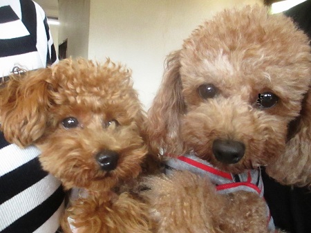 初めまして 右 シェリーちゃん 3才 左 ミミちゃん 8ヶ月のパピー 二人揃って モンジュリデビューしましゅ どうぞ、よろしく |