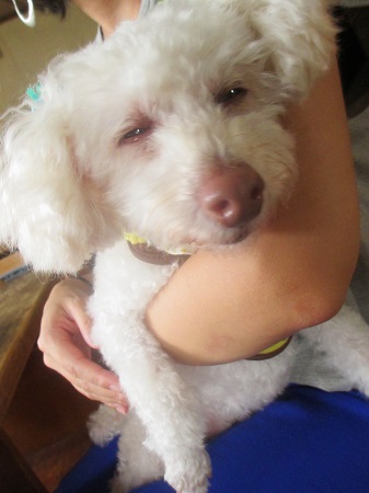 ルルの後ろにいる お姉ちゃまも一緒に撮ってほしかったけど お姉ちゃま 隠れちゃったワン |