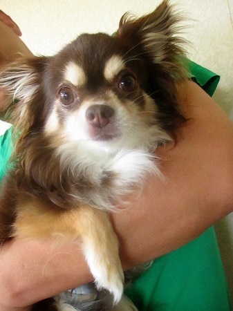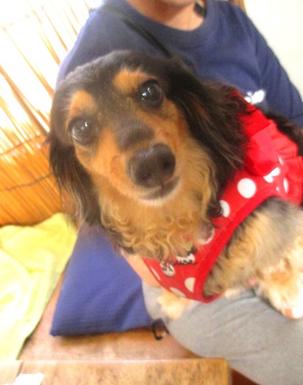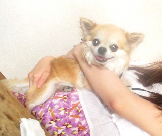 チョコちゃん、 4ヶ月のパピーでちゅ ご飯もおいちくいただいて ええ気持ちに寝よったのにイ~ |
