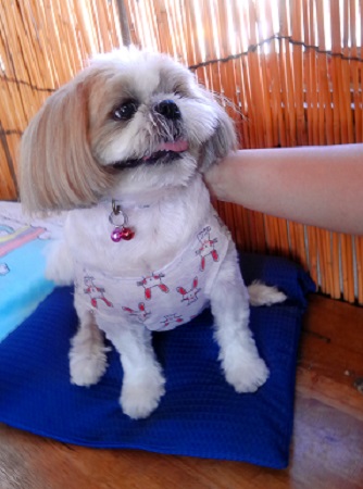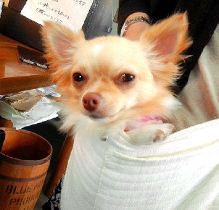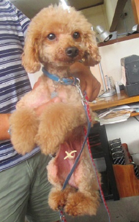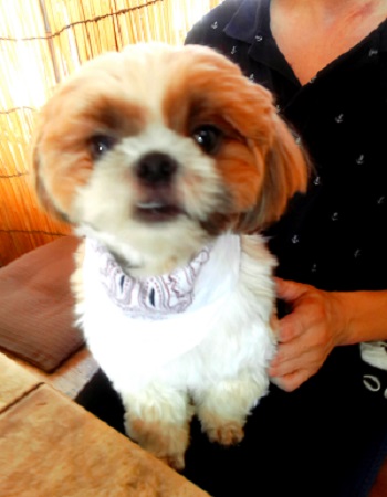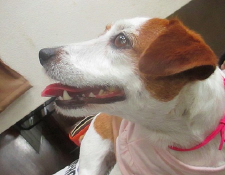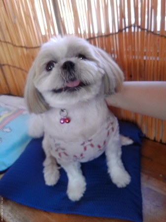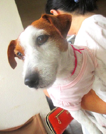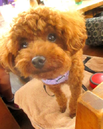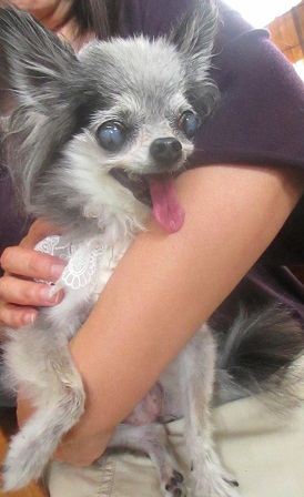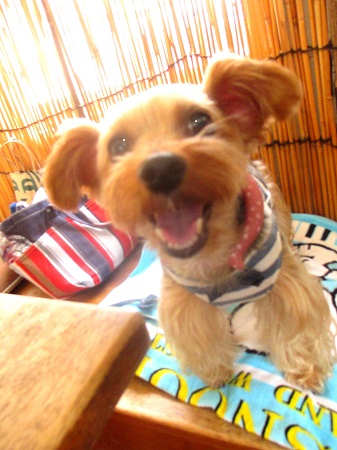 アズキちゃん ママ達のお伴で来たの 1日クーラーの中にいるでしょ ちょっと 弱り気味 |