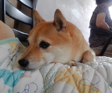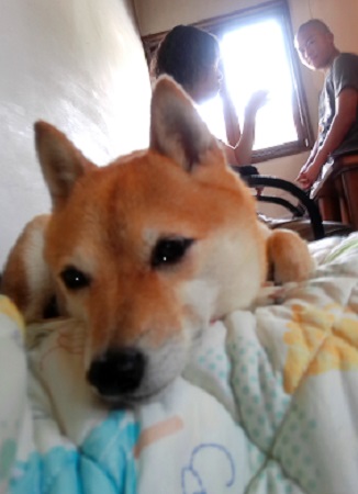 暑いですねぇ~ アズキ 家で寝てたんやけど ママのお供で来たの |