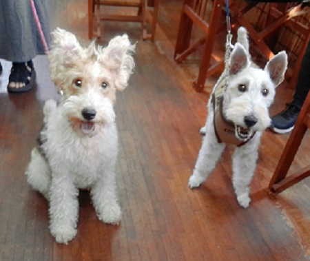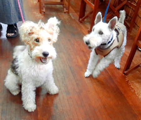 初めまして 左 クータ君 2才 右 コムギちゃん 1才 き、緊張するやん モンジュリデビューやて どうする、どうする |