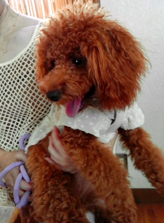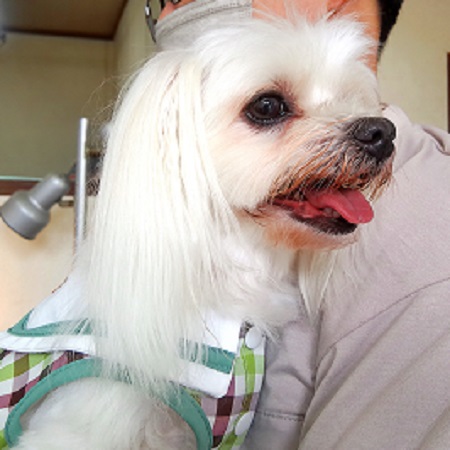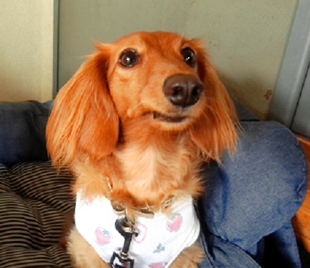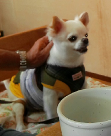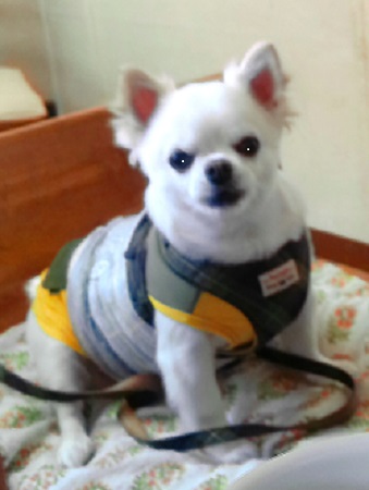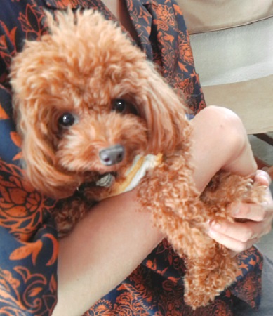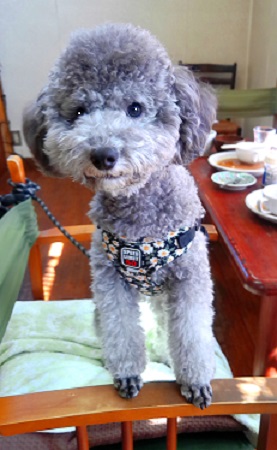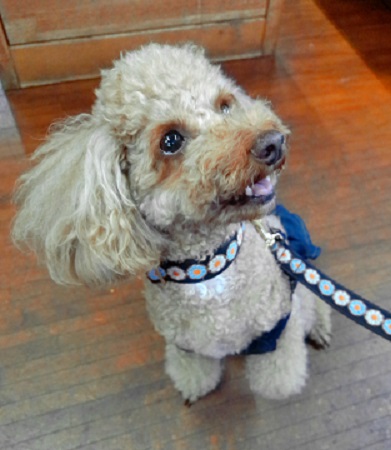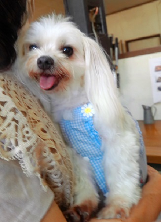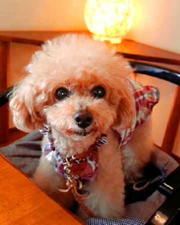 アズキで~す きょうも、ママのお伴で来ました ママとだったらどこでも うれしいの |