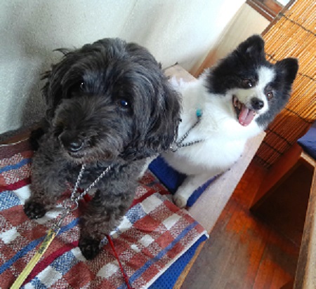 右 ロアちゃん 1才 左 ミルちゃん 1才半 ちょっと~ミルちゃん ちゃんと前むきや~ それおしりやで~ せっかく モンジュリデビューするのんに |