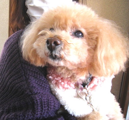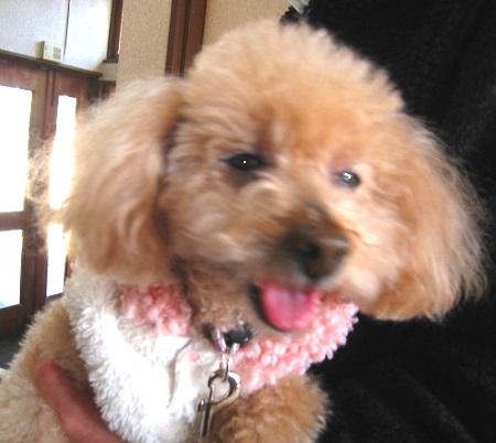 スズちゃん 来たワ きょうは、スヌード着用でお写真でし |