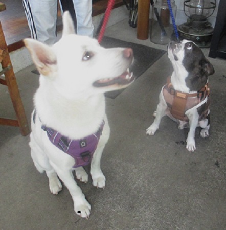 お隣のワンコちゃん達と 仲良くなりました 右 ソライア君 左 ミルティーちゃん 私らも やっぱりマイペース |