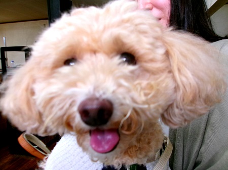はじめまして ココちゃん 4才でしゅ モンジュリデビューって 何? ふ~ん 写真撮るんか |