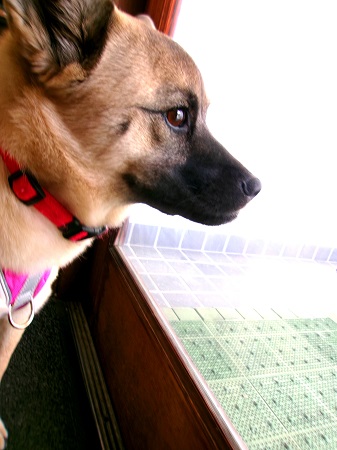 そやねぇ~ お散歩では よ~ココの前を通るんやけど サラ、待ちわびたワ |