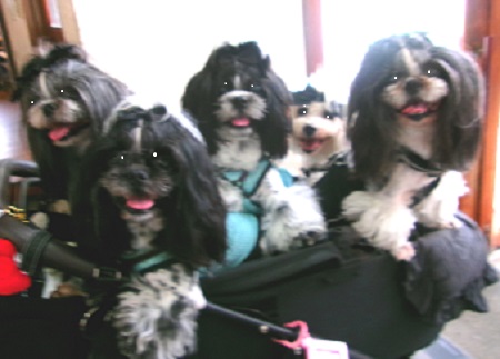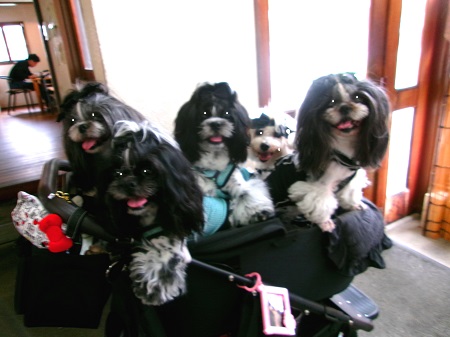 イエ~イ わんわん5人姉弟 だよ ラオちゃん中左 セラちゃん中列右 リオ君中列真ん中 前列前ロア君 後列白は スノーちゃん |
