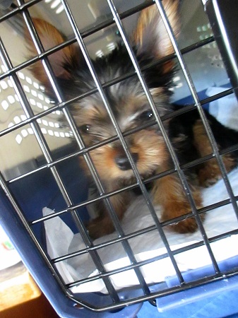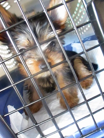 はじめまちて タムちゃん 3ヶ月の パピーでつ 予防接種もまだなんで、 あっ、コロナ違うで ケージで 失礼ちまつ |