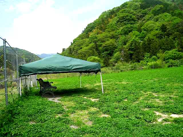 あんなところに、日よけのテントが